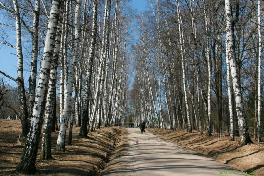 "In the morning again the play of light and shadow from the big thickly dressed birches along the prospect on high, dark green grass, and forget-me-nots, and the Chinese burn, and all — important waving of the birches preshpekt the same as it was when I was, 60 years ago, the first time I noticed and fell in love with this beauty". /L. N. Thick. Letter to S. A. Tolstoy, 3 may, 1897./